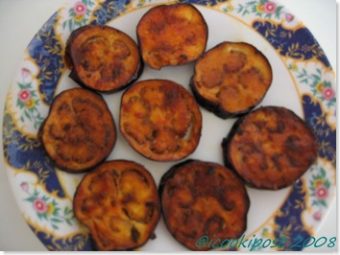 There is no need to marinate brinjal pieces in curd for preparing this dish.