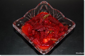 Beetroot is an excellent source of vitamin A and vitamin C. This is an easy and delicious pickle and it can be served with chappathi or rice.