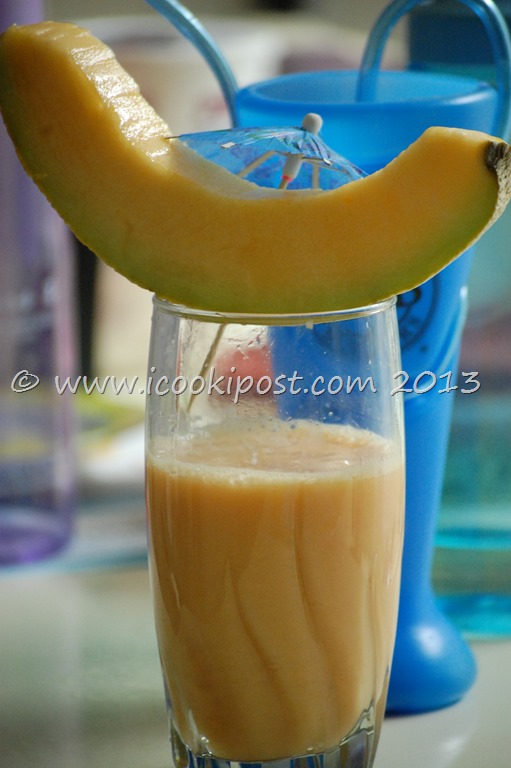 Cantaloupe is the most popular variety of Melon in United States.This smoothie can be prepared using muskmelon and watermelon. The good thing about home made smoothies is that they contain no artificial flavors, colors or preservatives. So Next time, when you have few fruits left in your fruit bowl at the end of the week, try making a delicious and healthy smoothie for your family.