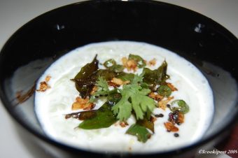 - Peel and grate cucumber . In a Bowl, add grated cucumber to curd and mix well.