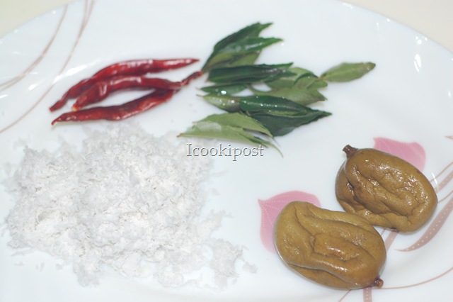 - Dry roast red chilies.Grind together salted mangoes, curry leaves, grated coconut and red chilly. There is no need to add salt as salted mangoes contain enough salt.