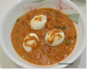 - Add boiled eggs to it and mix.Garnish with coriander leaves.