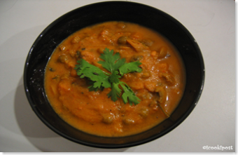 This recipe is adapted from Nita Mehta’s Great Indian Cooking.This is a less spicy curry and it tastes great with chappathi.