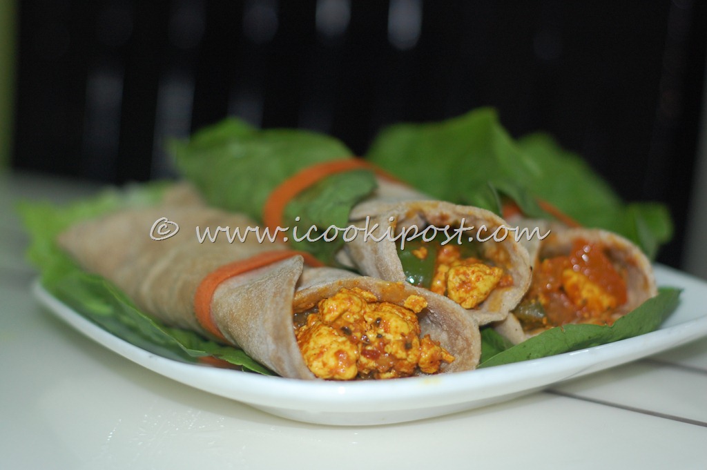 Even though it is belated, wish you all a happy and prosperous 2011.hope all your dreams and resolutions comes true.I am going to start the new year with my 200th post.These paneer rolls are made with Paneer and vegetable filling.This filling is rich in vitamins and minerals and the calcium packed marinade adds an extra zing to this recipe.Chappati made with Whole wheat flour which is a good source of iron and fibre is more healthier as compared to the usual plain flour(maida) rotis. you can have this in your tiffin and enjoy this as a complete meal.