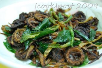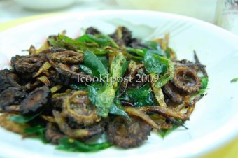 - Fry chopped onions in the remaining oil till golden brown in color and mix with bitter gourd pieces.