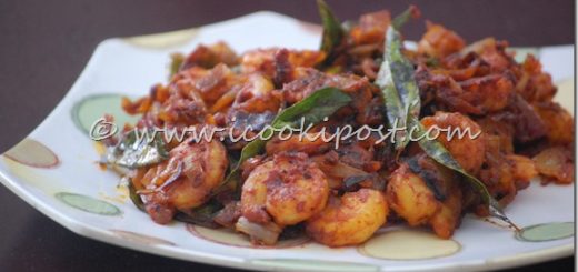 This is a popular kerala style spicy prawn roast prepared using prawn and spices.This tastes great with rice or roti. Ingredients Prawn/Chemmeen – 250 gms Onion(chopped) –2 Ginger-Garlic paste – 1 tbsp Green chilly...